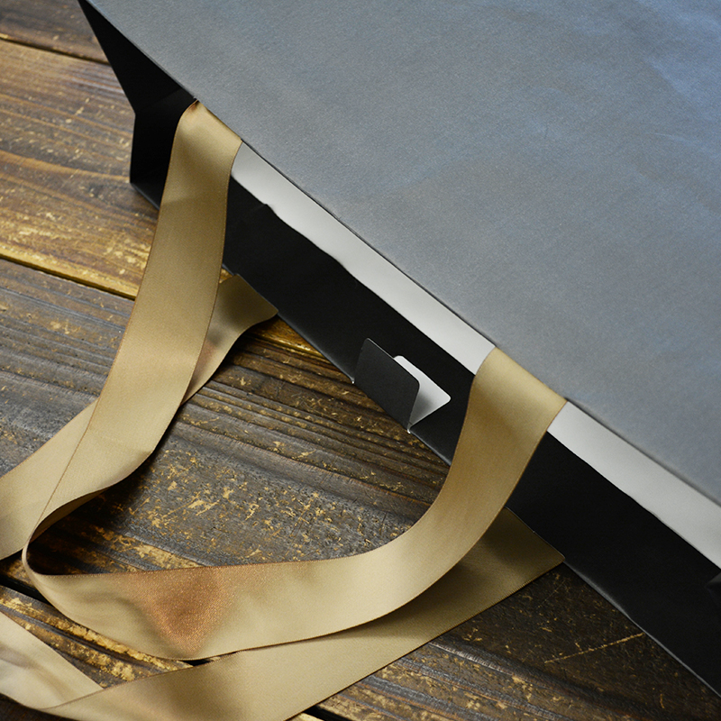 紙の表面には、ブランドの紙袋でもよく使われるエンボスがかかっているので、高級感を感じる仕上がりになっています。