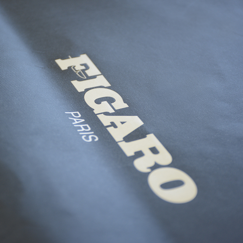 白い箔押しのロゴ部分を拡大してみました。コントラストがパッキリしていてかっこいいですね。
