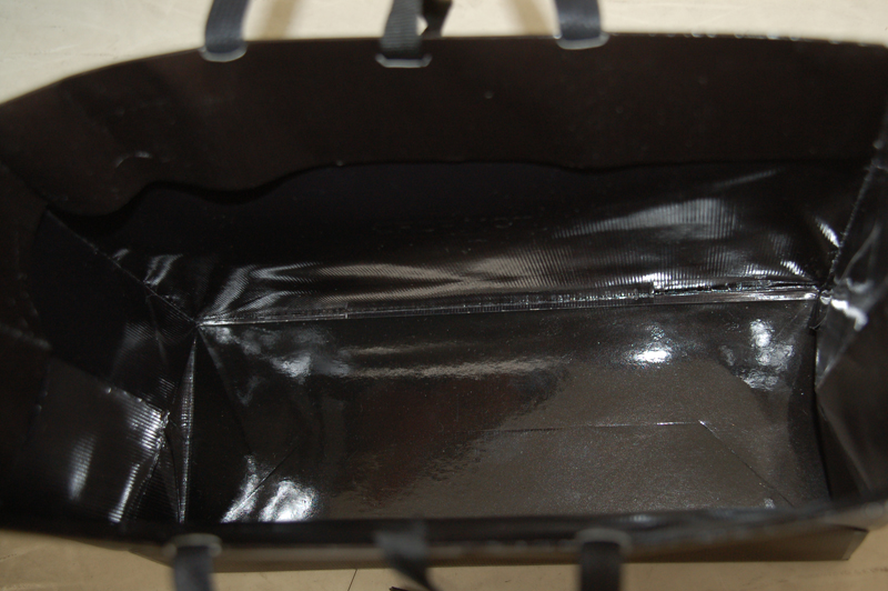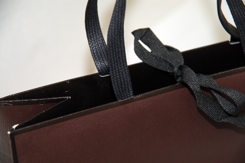 マニッシュなオリジナル紙袋2012年03月15日 こんにちは。根来です。 今日ご紹介する紙袋はこちらです。 ハンドルはワックスコードの平紐です。 ボディにはストライプの エンボス加工が施されています。 さらにロゴまわりを型押し、 そしてロゴは浮き出し箔です。 内側は濃いブラウン+ニスでコーティング。 ストライプのエンボスが内側にも生かされています。 見た目はシンプルですが 随所にこだわりを感じる コリコリ紙袋ですね。 ハンドルと内側の"重さ"が かっこいいオリジナル紙袋です。
