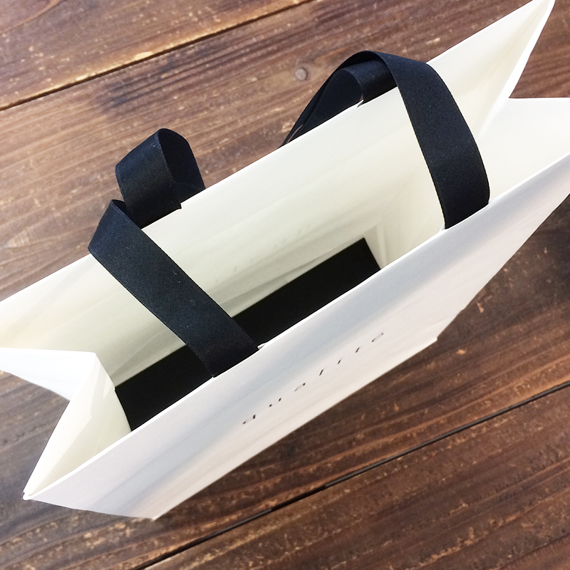 底に紙袋の強度を上げる「底ボール」を入れるのですが、その底ボールが黒になっていてモノトーン感が更に増しています。