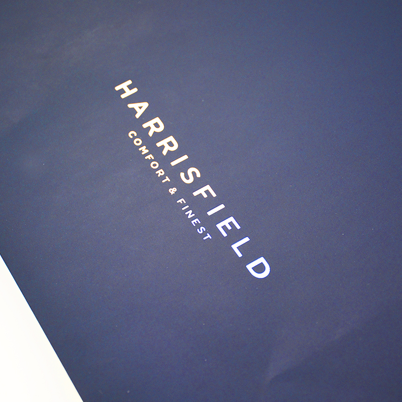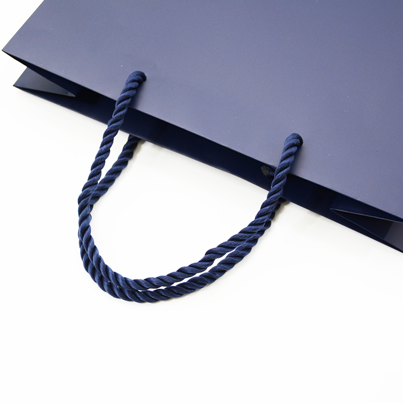 ネイビーにシルバーロゴのかっこいい紙袋2018年07月04日 こんにちは ベリービーバッグのヨシウチです。 ベリービーバッグのデザイナーが新たに作った紙袋を紹介しますよ! ネイビーにシルバーのロゴでかっこよく仕上がっていますね! メンズブランドにオススメです。 ロゴのアップはこのような感じに ハンドルもネイビーで統一されていてかっこいいですね! このハンドルは「ツイストロープ」といいます。 ツヤ感もあり高級感のあるハンドルです。 紙袋制作の参考に是非ご利用ください!