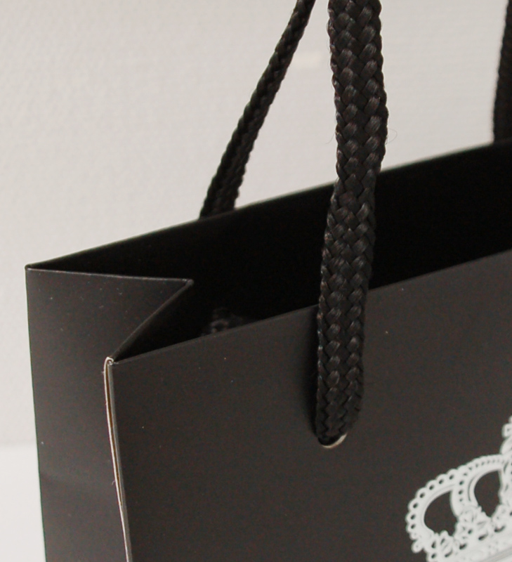 小さくてクールなオリジナル紙袋2012年03月17日 こんにちは、ベリービーの根来です。 今日の紙袋はこちらです! 画像ではわかりにくいですが ジュエリーをいれる紙袋なので かなりこぶりです。 ハンドルはエクセルツイストコードです。 ロゴはシルバー箔押し ボディはマットPP加工です。 ちいさくてもハンドルがしっかりしているので クールな印象をもつ オリジナル紙袋ですね!