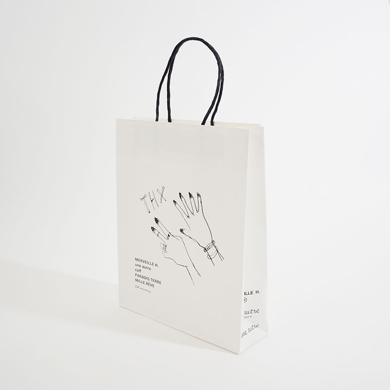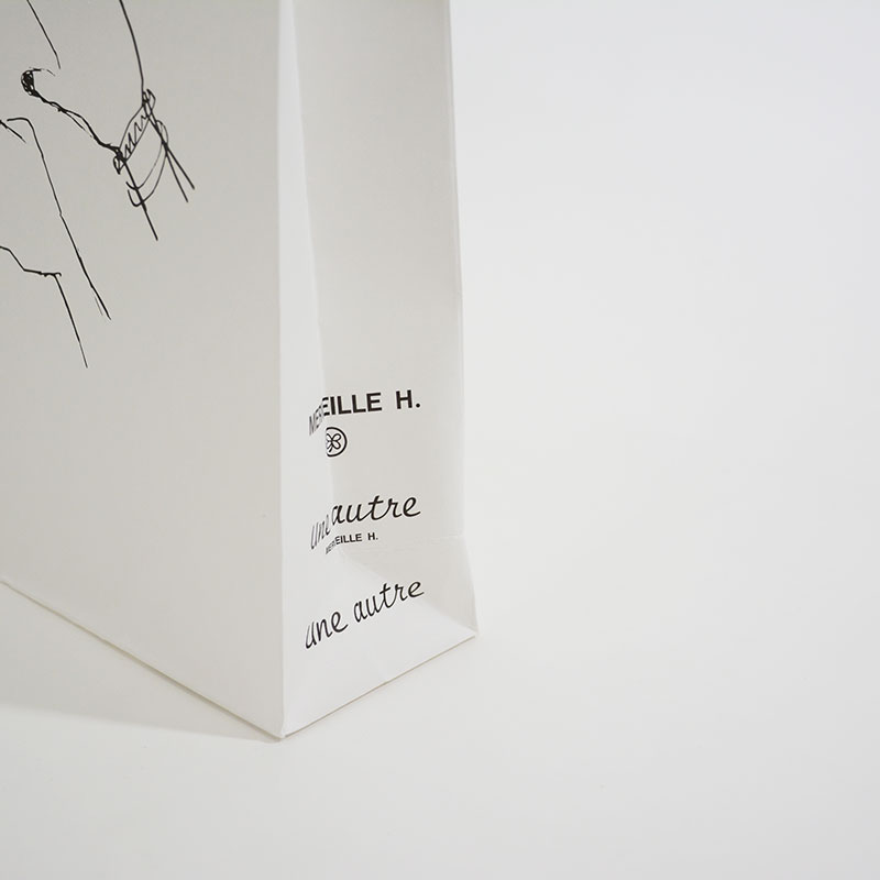 しかし、ラフなタッチのイラストを用いた紙袋ですのでオプション等を付けずに紙袋自体の構成もシンプルなものにしたほうがコンセプトに合っていて好印象だと思います。