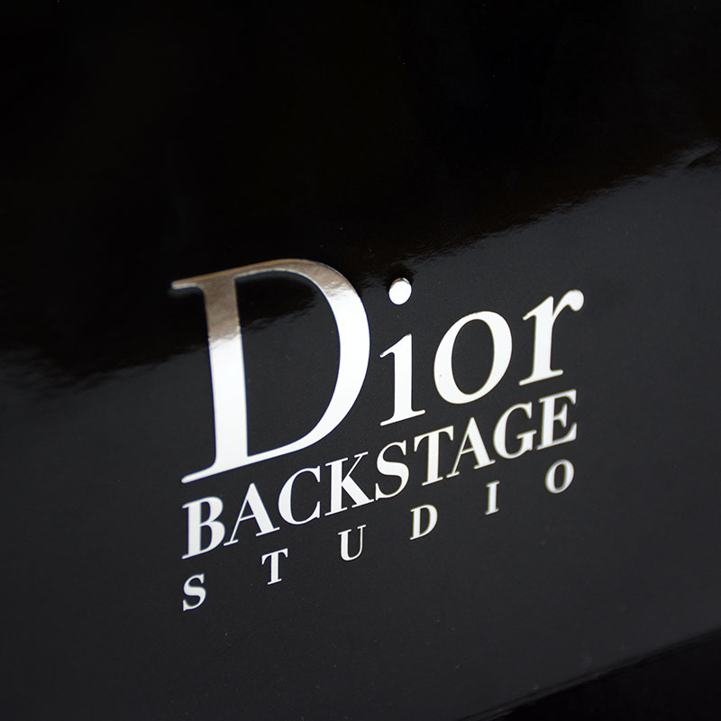 ファッションショーや撮影現場などの華やかな場で活躍するメイクアップアーティストが使用するアイテムをモチーフに展開しているコスメラインの紙袋のようです。