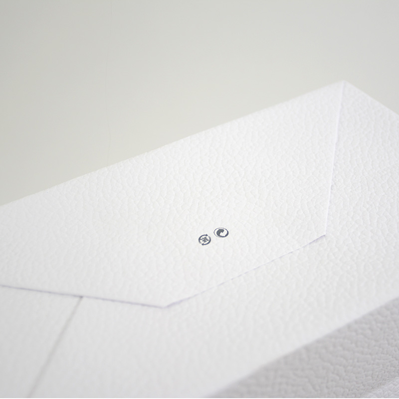 紙の表面は少しだけ青みのある白です。所々にエンボス加工の影が落ちています。