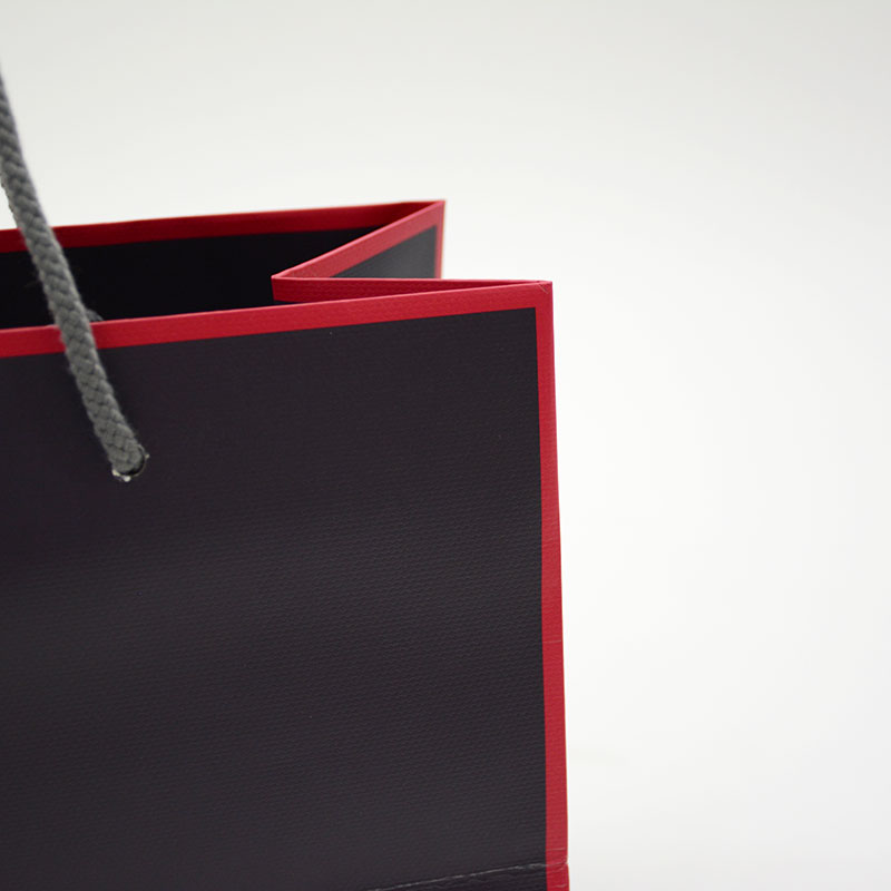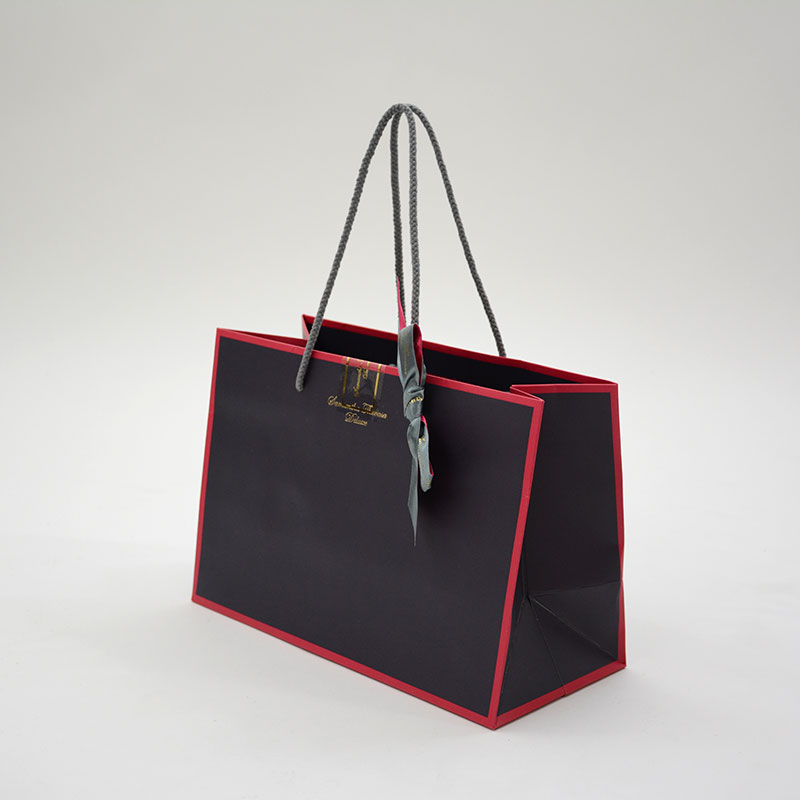 こういったバランスの紙袋は奥行きがあるため斜めから見たときのシルエットが崩れる印象もありますが製袋がきれいなこともありシュッとした綺麗な印象を受けました。