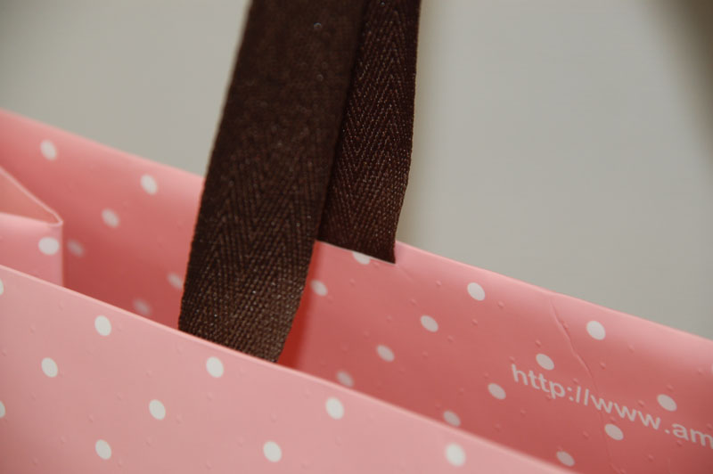 手提げ紐は平紐でホットメルトによる縦穴留めです。
