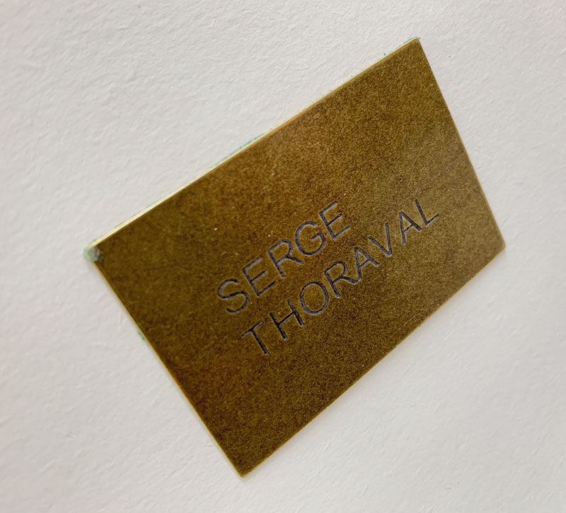 腐食させた真鍮板を紙袋に両面テープで貼り付けています。