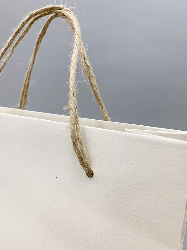 手提げ部分に麻紐を使い、紙袋本体のの紙質は