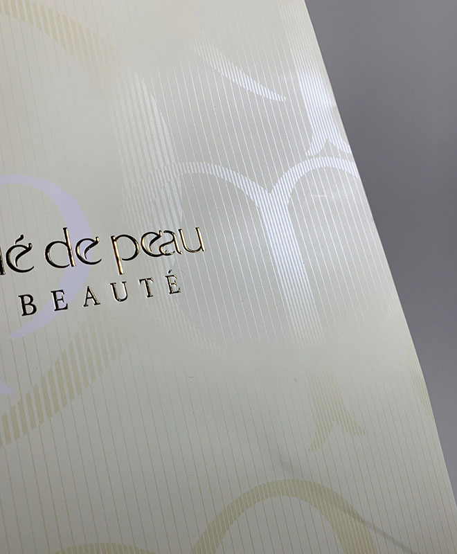 この箔押しの背景に印刷されているのはおそらくニス印刷ですね。