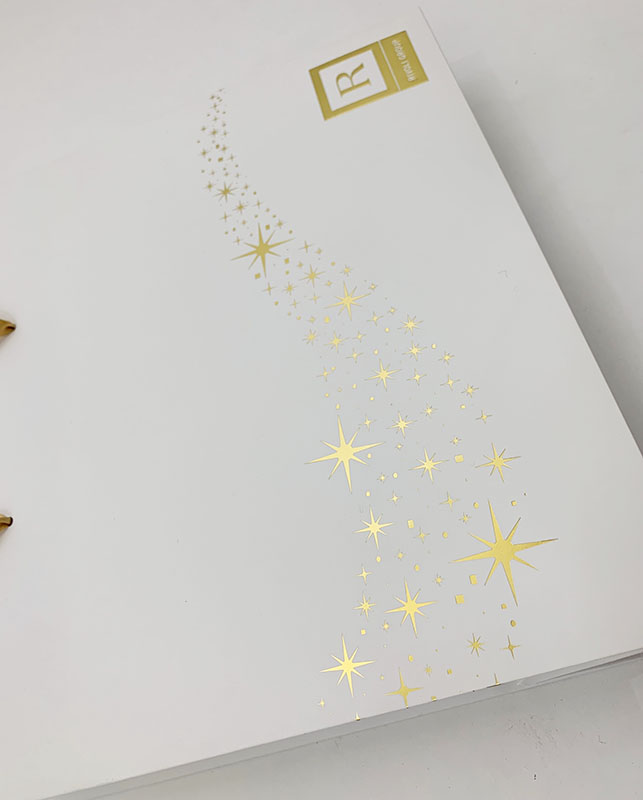 その横幅いっぱいにキラキラ光る星模様が箔押しされています。