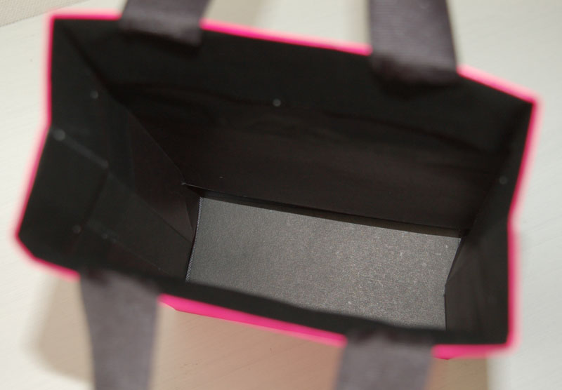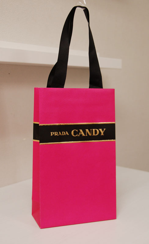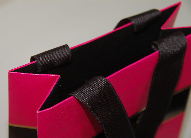 ハイブランドの“粋”を感じるショップ袋2012年04月17日 こんにちはベリービーの芦谷です。 今日はとっても“粋”なショップ袋をご紹介します。 とっても鮮やかなマゼンダに黒とゴールドの大胆なコントラスト。 ロゴは浮きだし箔押しです。 全体のバランスから見ると、少し「長すぎ」「太すぎ」のグログランテープがカッコイイ!! 本物のレザーのような“しぼ加工”が高級感を醸し出しています。 内面はブラックホールのような艶消しのブラック。 もちろん底ボールまで、真っ黒です!! 袋マニアを興奮させる逸品ですね。