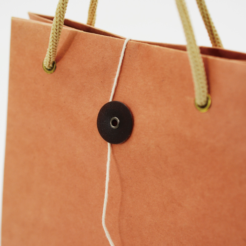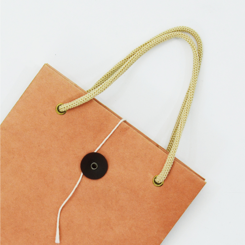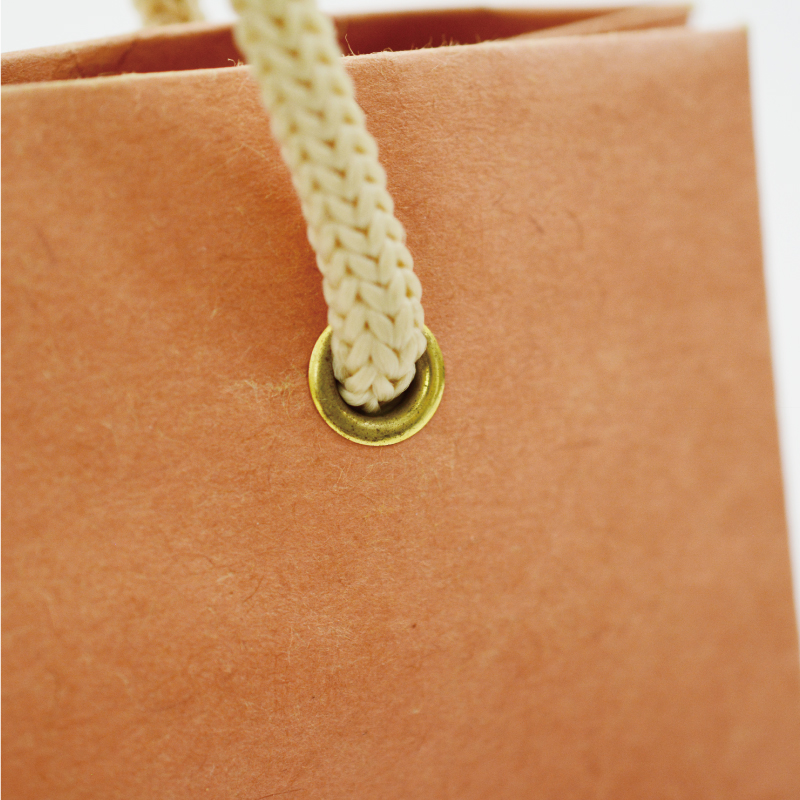 裏面についている紐を表に持ってきて巻くことで、紙袋の中身を保護できます。