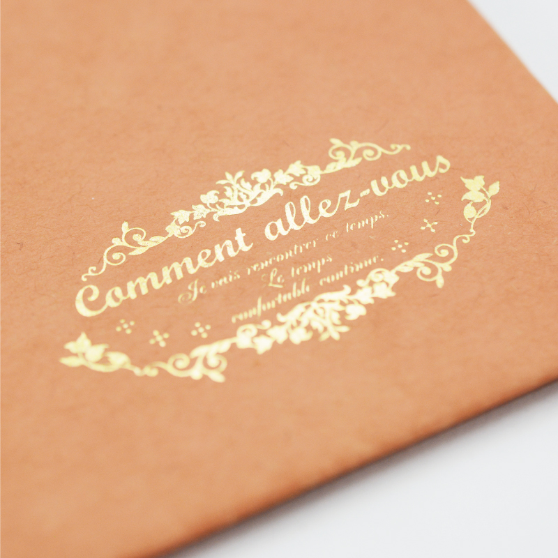 緻密なデザインですが、しっかり箔押しが実現出来ています。キラキラしていてとても綺麗です。