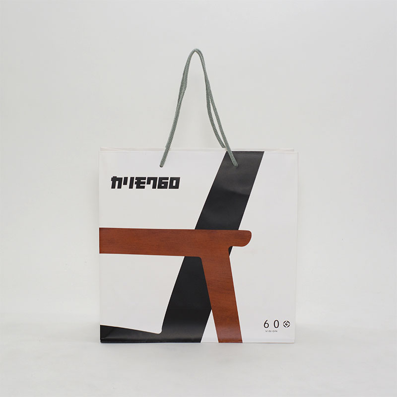 老舗の家具ブランドですが、全国に店舗を構えデザイン業界にも広く影響を与える家具店での取り扱いがされていることもあり、老舗家具メーカーとは思えないデザイン的でモダンな紙袋となっています。