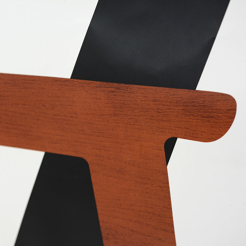 そして、デザイン面の中心部分には大きく切り取られたように配置されたブランドの代表作であるチェアが横から見た図になっています。