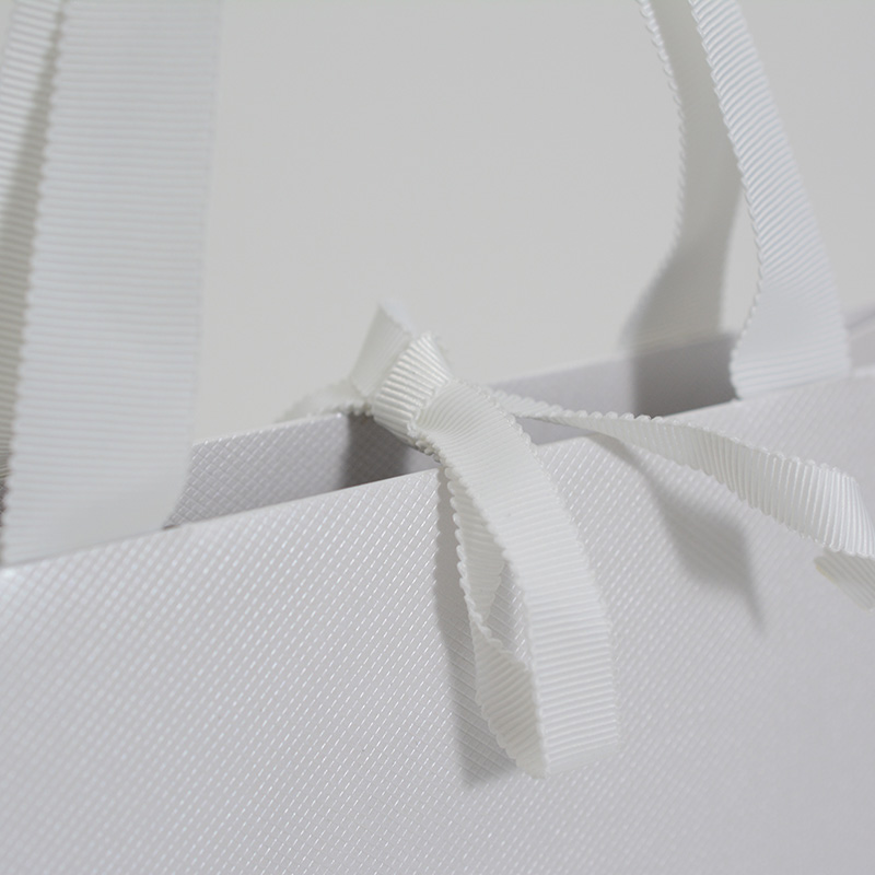 "格子状のエンボス加工"と"光沢感のある紙袋の質感"が