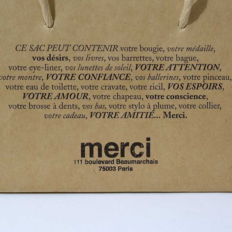 少しダメージ感を表現したロゴ使いが紙袋の雰囲気をより盛り上げています。