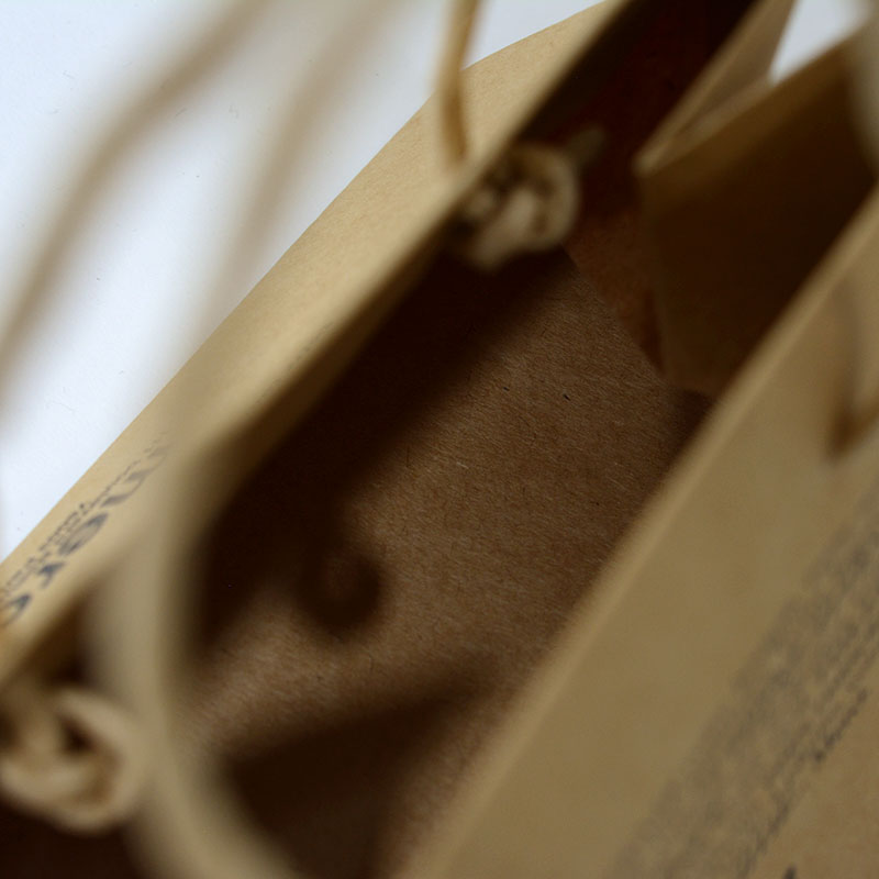 日本ではあまり見られない暗めのカラーのクラフト紙を使った紙袋です。