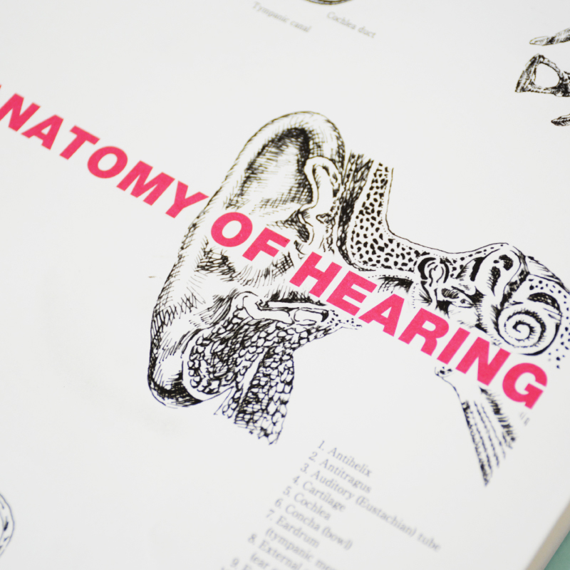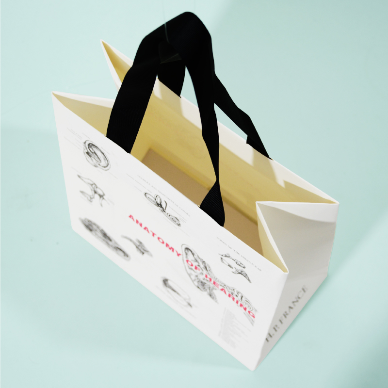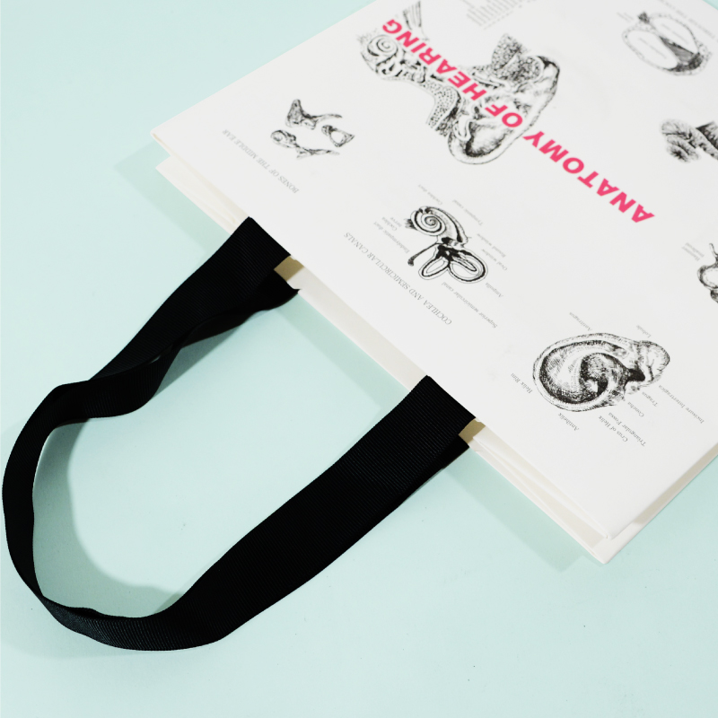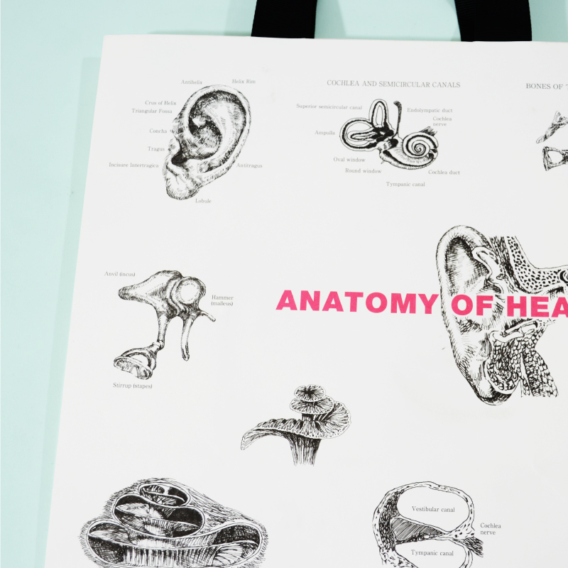 耳やら耳に関する部位のイラストが描かれているのが印象的な紙袋。