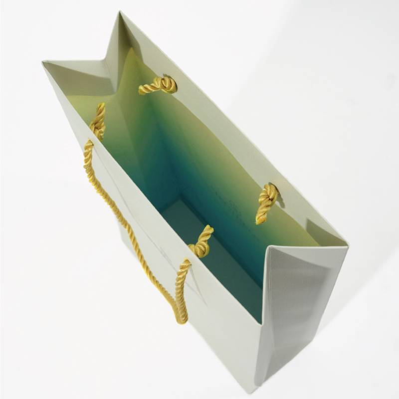 内側にグラデーションを施した紙袋は稀ですが、とても美しいですね。