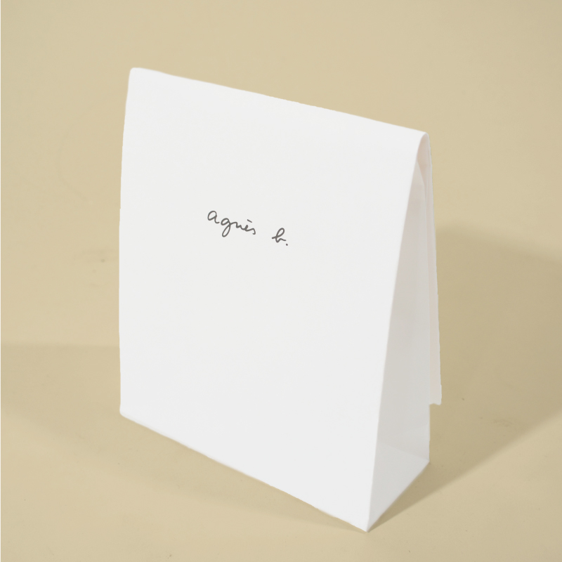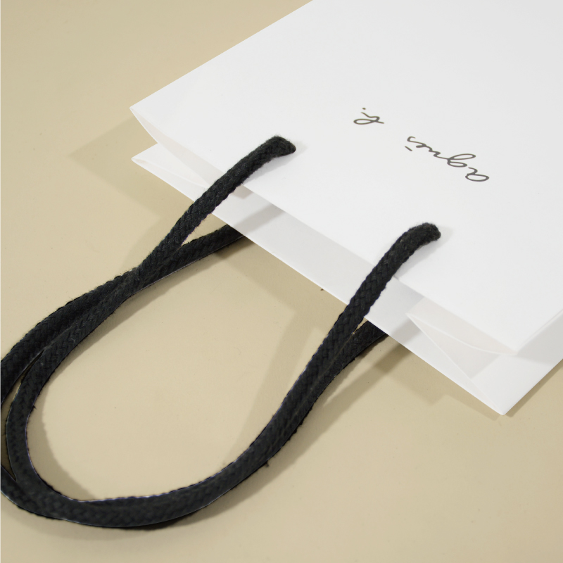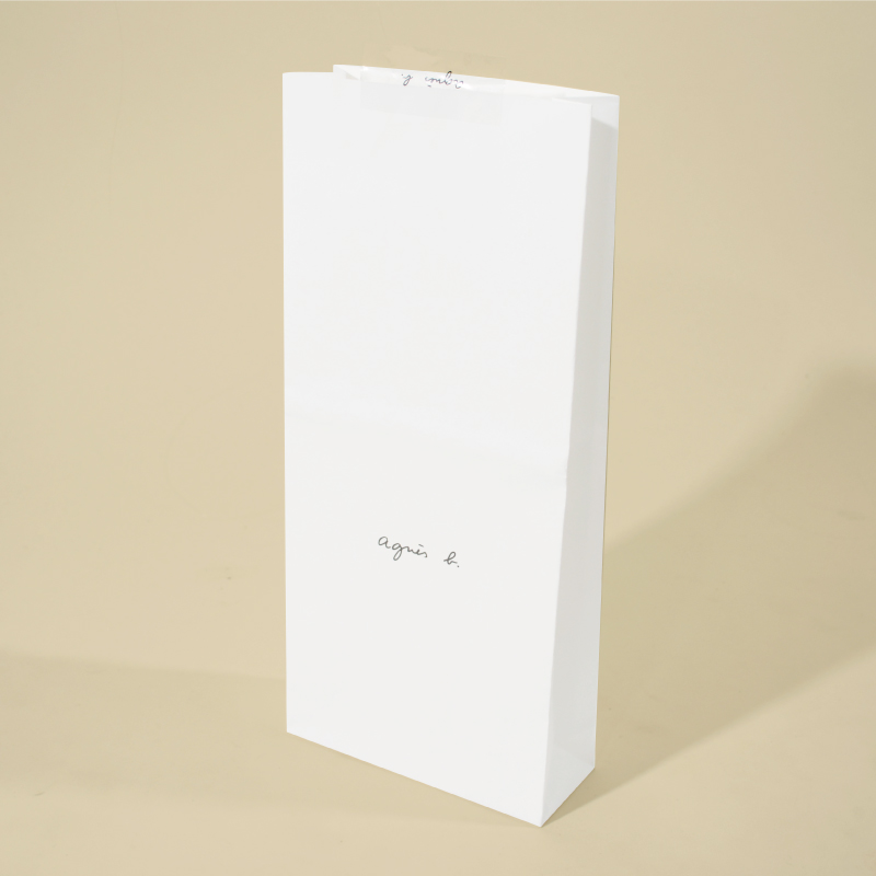 ロゴの丸みから感じるどこか中性的なイメージともよくマッチした紙袋です。