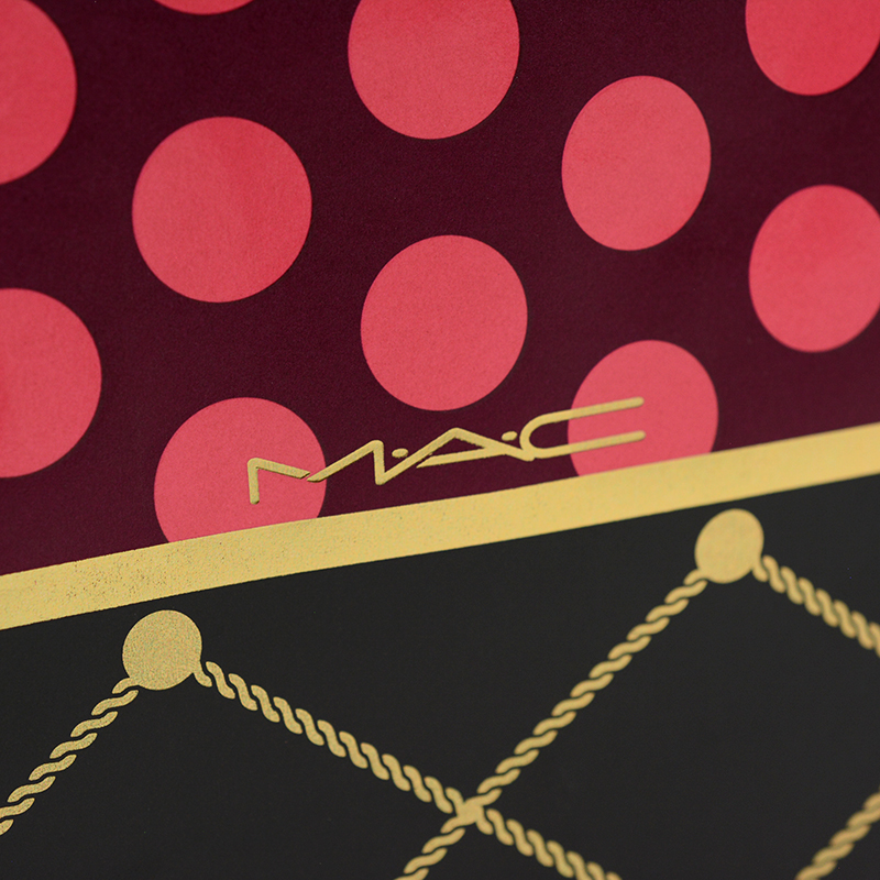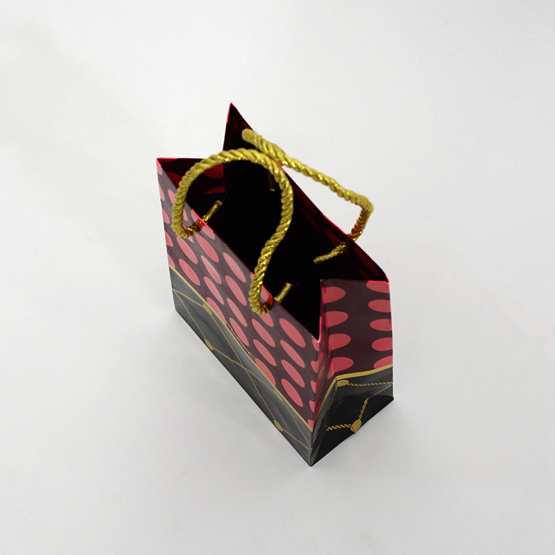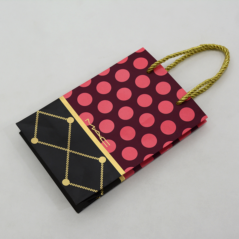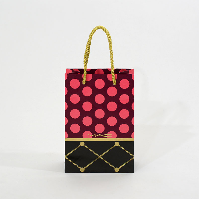 赤色のドットが目を引くコスメブランドの紙袋をご紹介します。