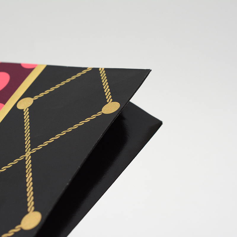 表面、裏面共に折りたたみの線が入らない為、デザインが綺麗に見えるのがポイント。