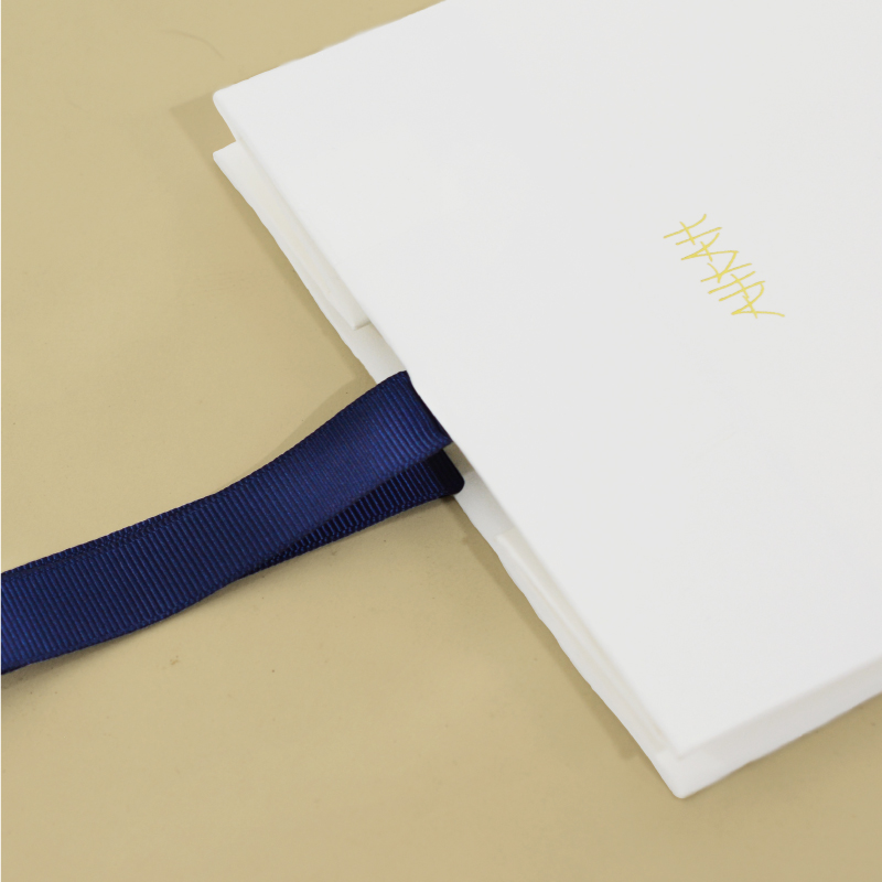 グログランテープのネイビーはとても上品で、シンプルながらもブランド感がでていますね。