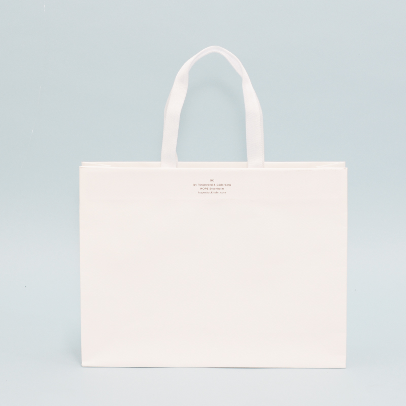 ストックホルムのデザイナーが立ち上げたアパレルブランドの紙袋です。
