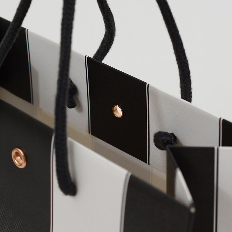 ハトメのピンクゴールドや、ロゴに入るイラストなどで可愛らしさもプラスされて、素敵な紙袋でした。