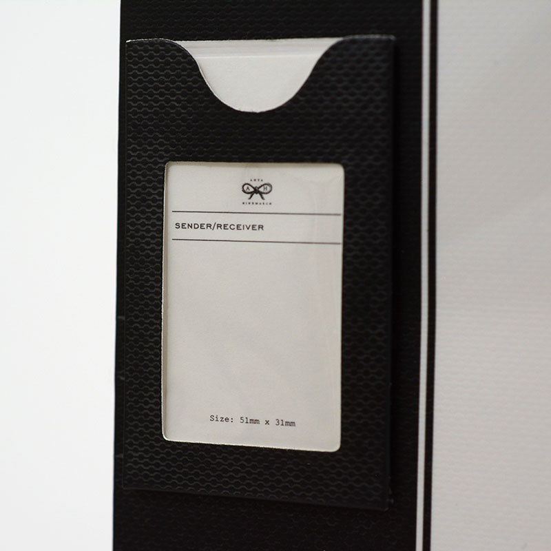 ロゴを囲う浮き出し加工の長方形が、ロゴをはっきり見せてくれています。