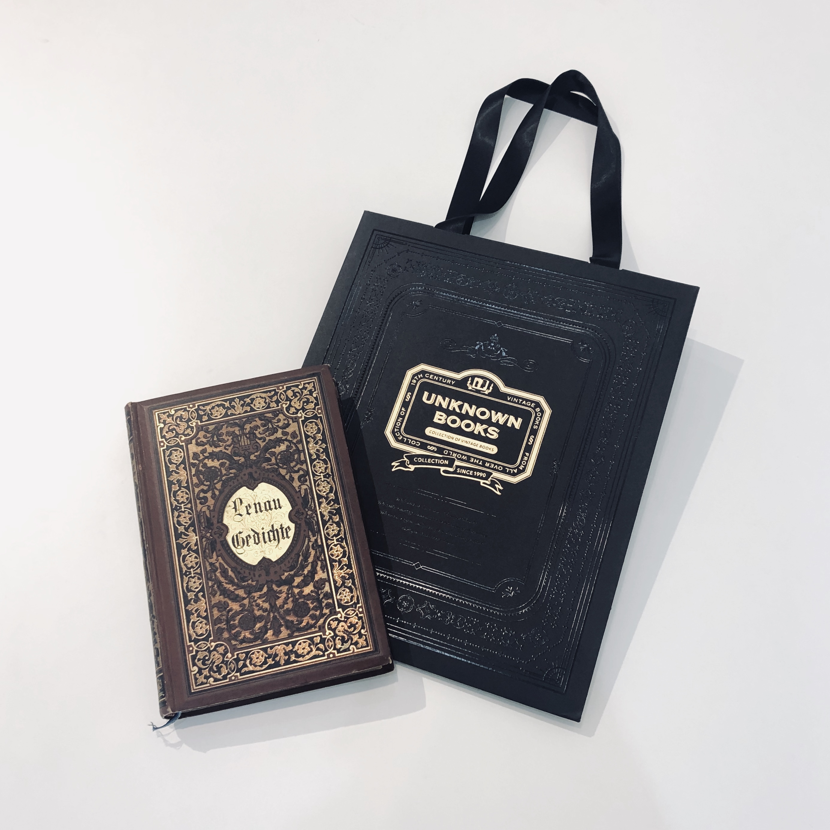 古書のイメージに合わせ、「歴史を感じるアンティークさ」がこの紙袋のテーマです。