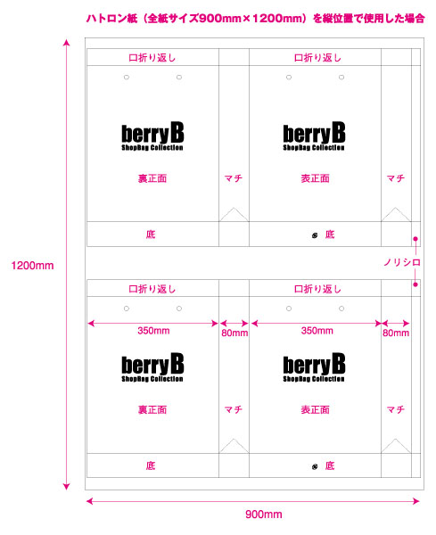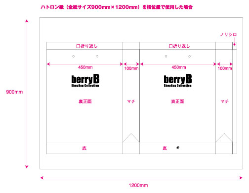 また、大きな袋の場合横幅+マチの合計が570mmまでですとハトロンで1枚の袋ができます。