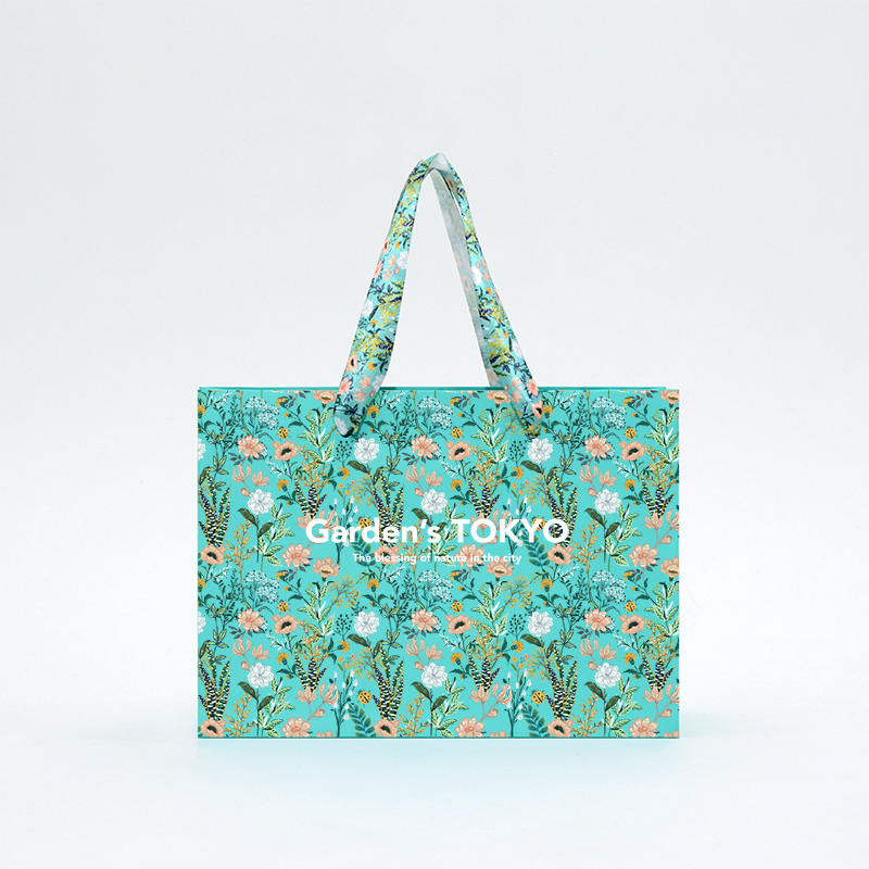 過去のブログ記事で紹介した紙袋でもサテンリボンの様々な使い方がされています。