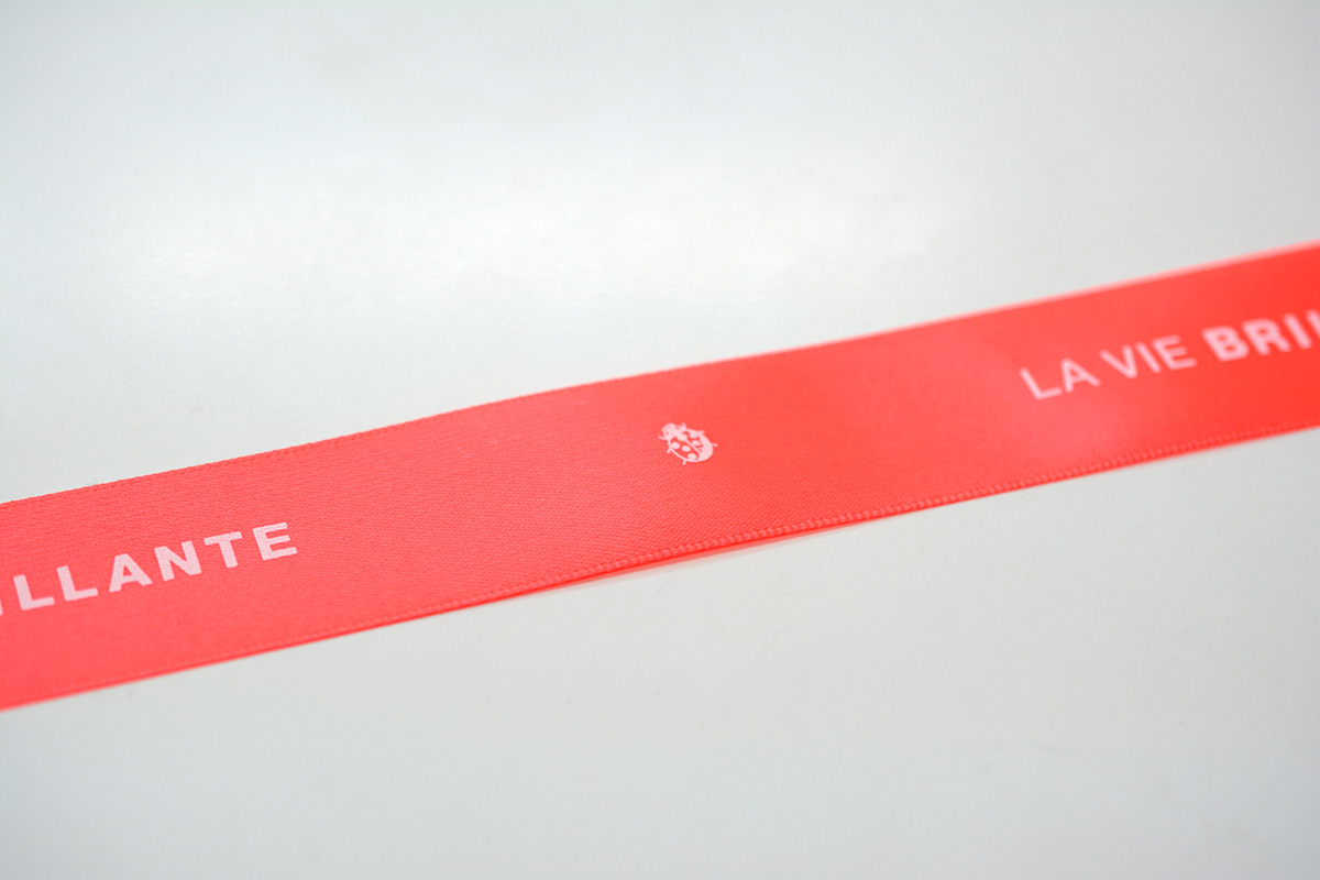 上のオレンジのリボンのようにシルク印刷と呼ばれる方法でのプリントも可能です。