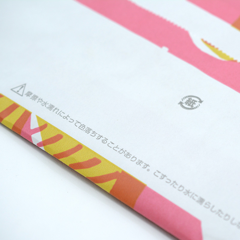 印刷で塗りつぶしのある紙袋にはよく書かれています。