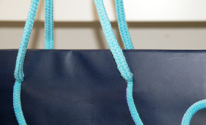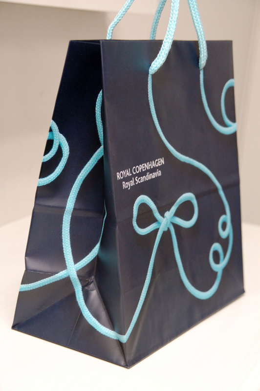とてもトリッキーなデザインのショップ袋2012年05月23日 こんにちはベリービーの芦谷です。 今日はとてもトリッキーなデザインの紙袋をご紹介します。 手提げ紐にアクリルスピンドルが使われていますが まったく同じ色のアクリルスピンドルが 紙袋に印刷されています。 まるで紙袋全体をアクリルスピンドルの紐が巻き付けられているようです。 なかなか、日本では見られないような トリッキーなデザインですので 思わず、ご紹介したくなりました。