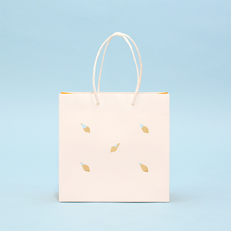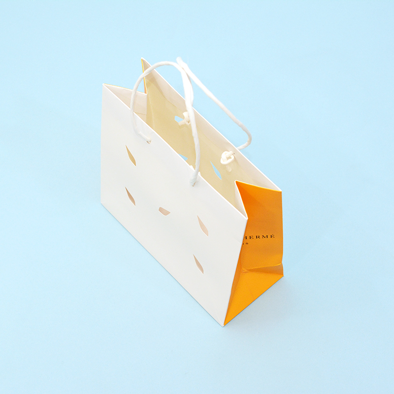 印象的な切り抜きデザインのマチオレンジ紙袋