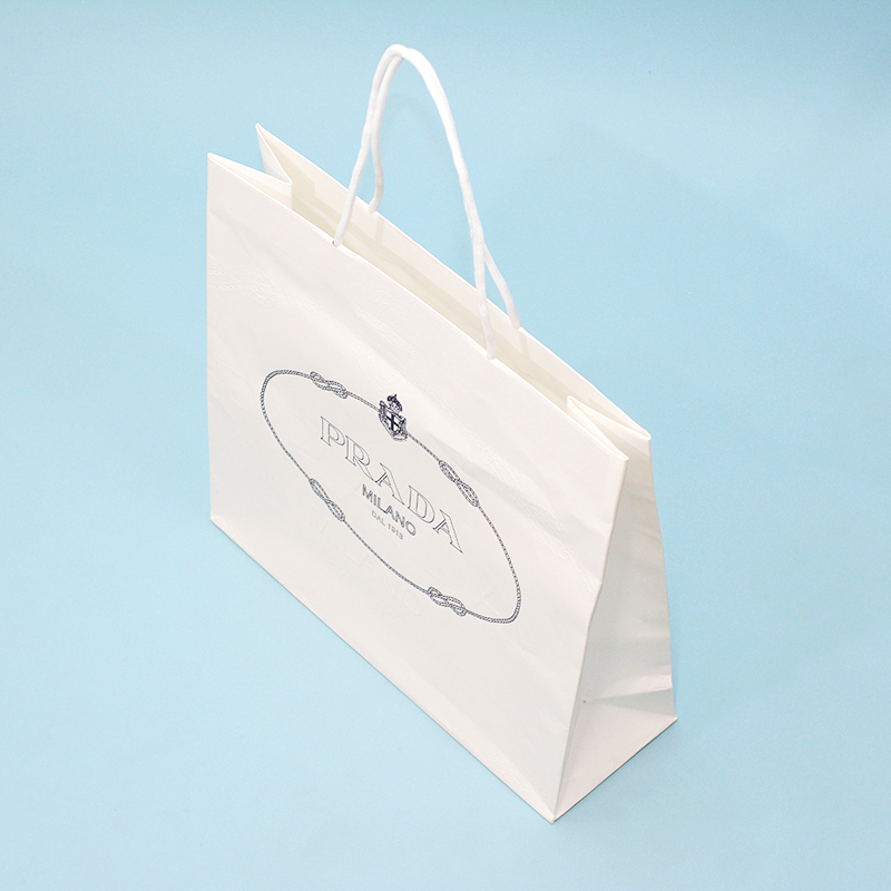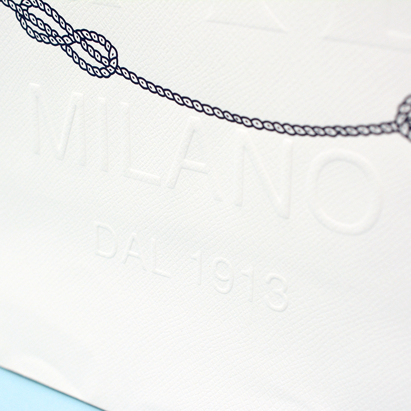 ホワイト×ネイビーと特徴的なエンボスで高貴な紙袋