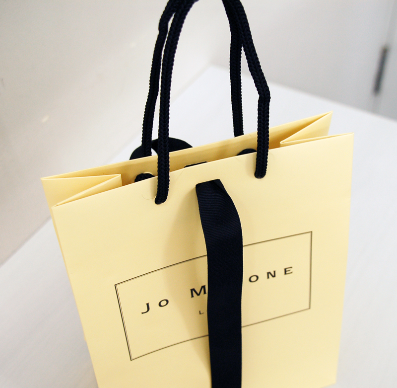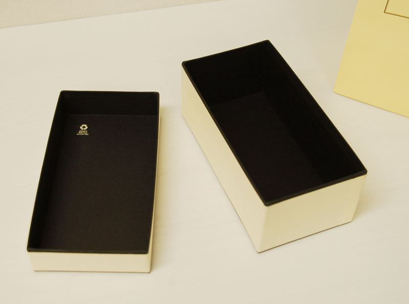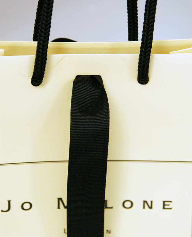 今日もボックスとショップ袋のご紹介2012年06月12日 こんにちはベリービーの芦谷です。 本日も昨日に引き続き、 素敵なショップ袋とボックスをご紹介します。 これはイギリスのキャンドルとかフレグランスを販売しているブランドの パッケージです。 クリーム色の用紙にジャガードのエンボスがされ、 そこに箔押しでロゴがプリントされたボックスです。 箱の中は真っ黒です。 紙袋は口折りにリボンが結ばれたタイプのものです。 ボックスと紙袋のバランスの良さが ブランドの価値を高めているかもしれませんね。