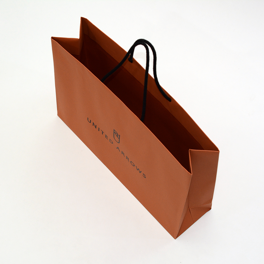 今回ご紹介するのは、絶妙なオレンジが印象的で、シンプルかつ高級感がある紙袋です。