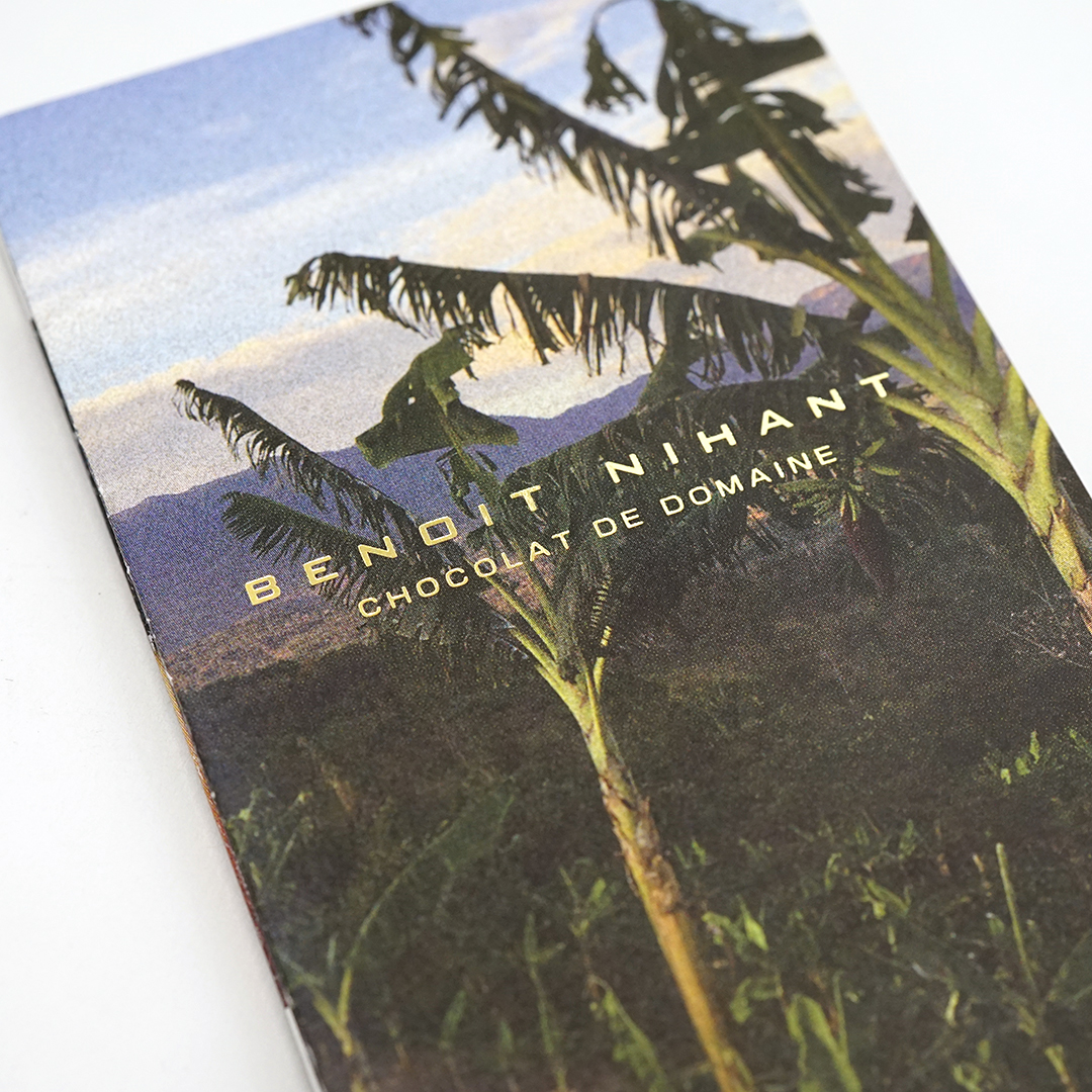 フルカラーでおそらくカカオの産地の風景がデザインされています。
