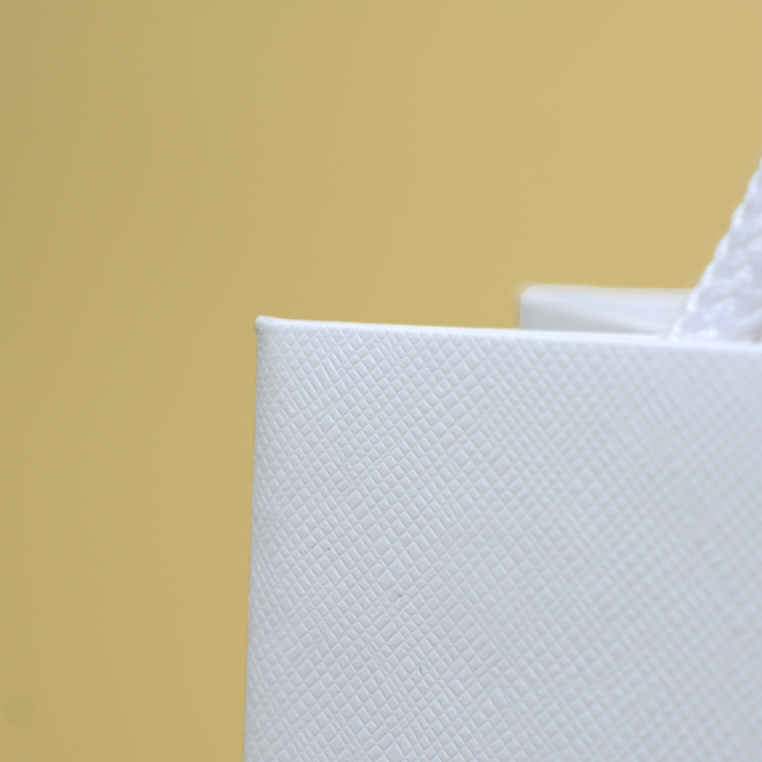 まず、紙質はクラフト紙のような質感で、斜めの格子柄のエンボスが入っています。