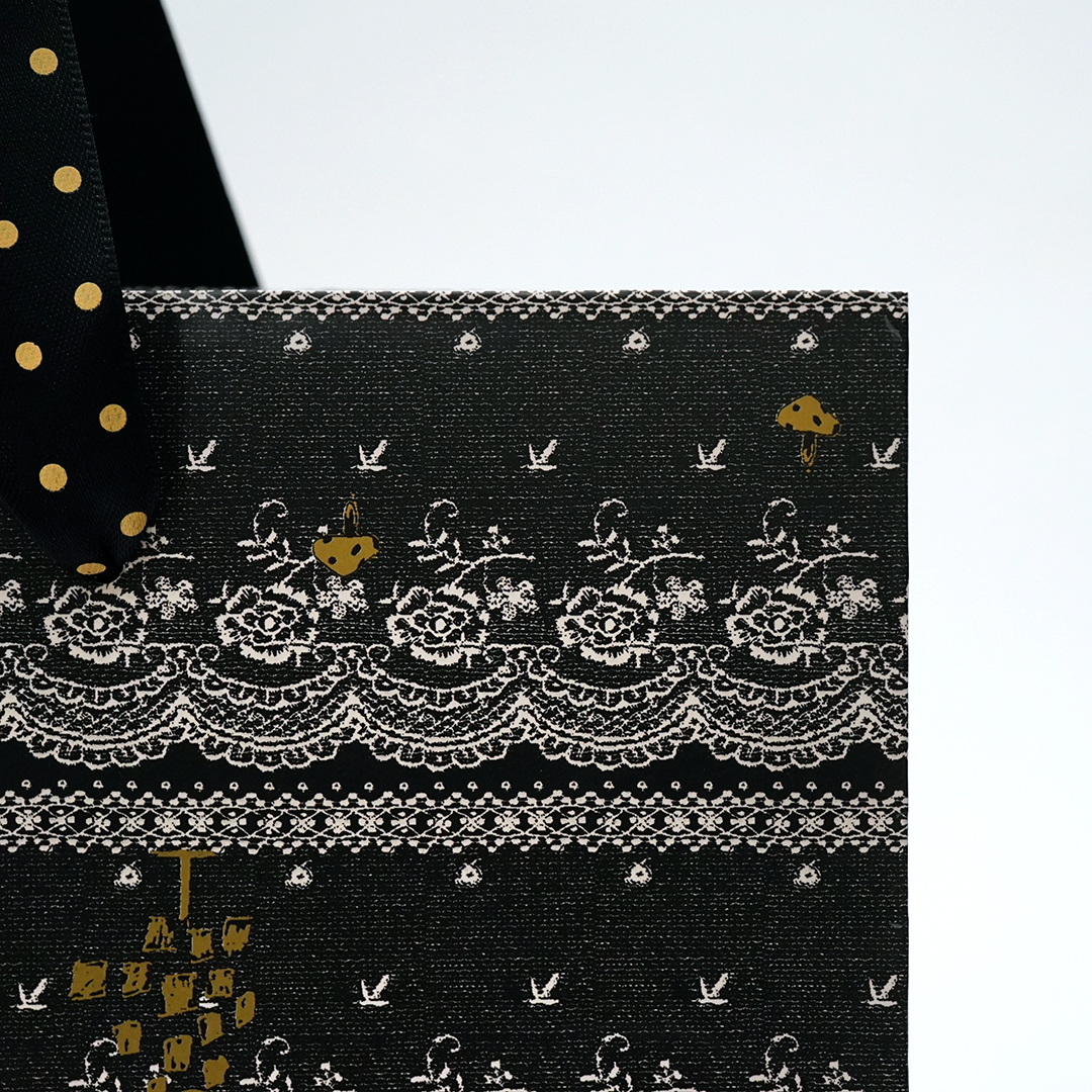 紙袋全体に入っているイラストはメタリックインクで印刷されていました。