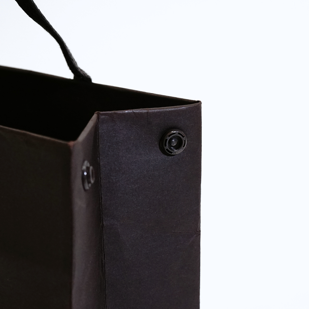サイドのスナップボタンで口を閉じるオールブラック紙袋