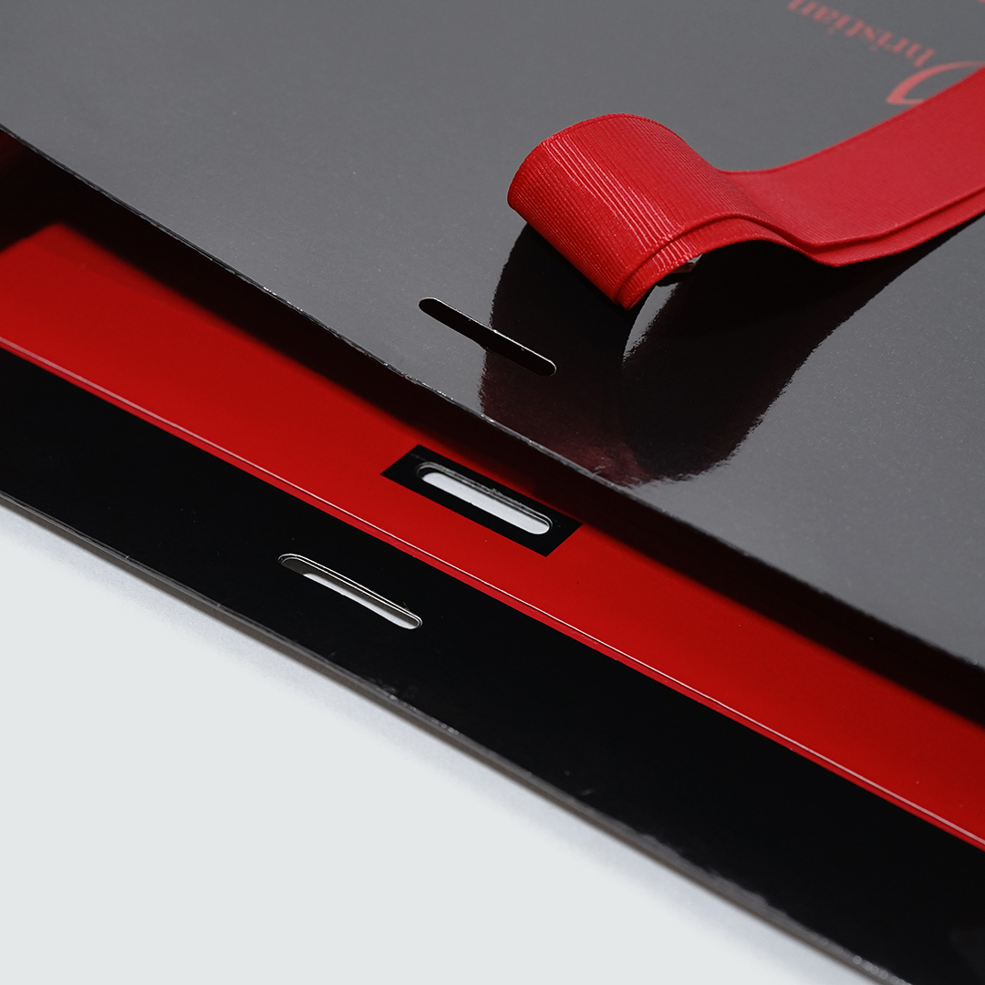 赤と黒のエッジの効いた色使いが