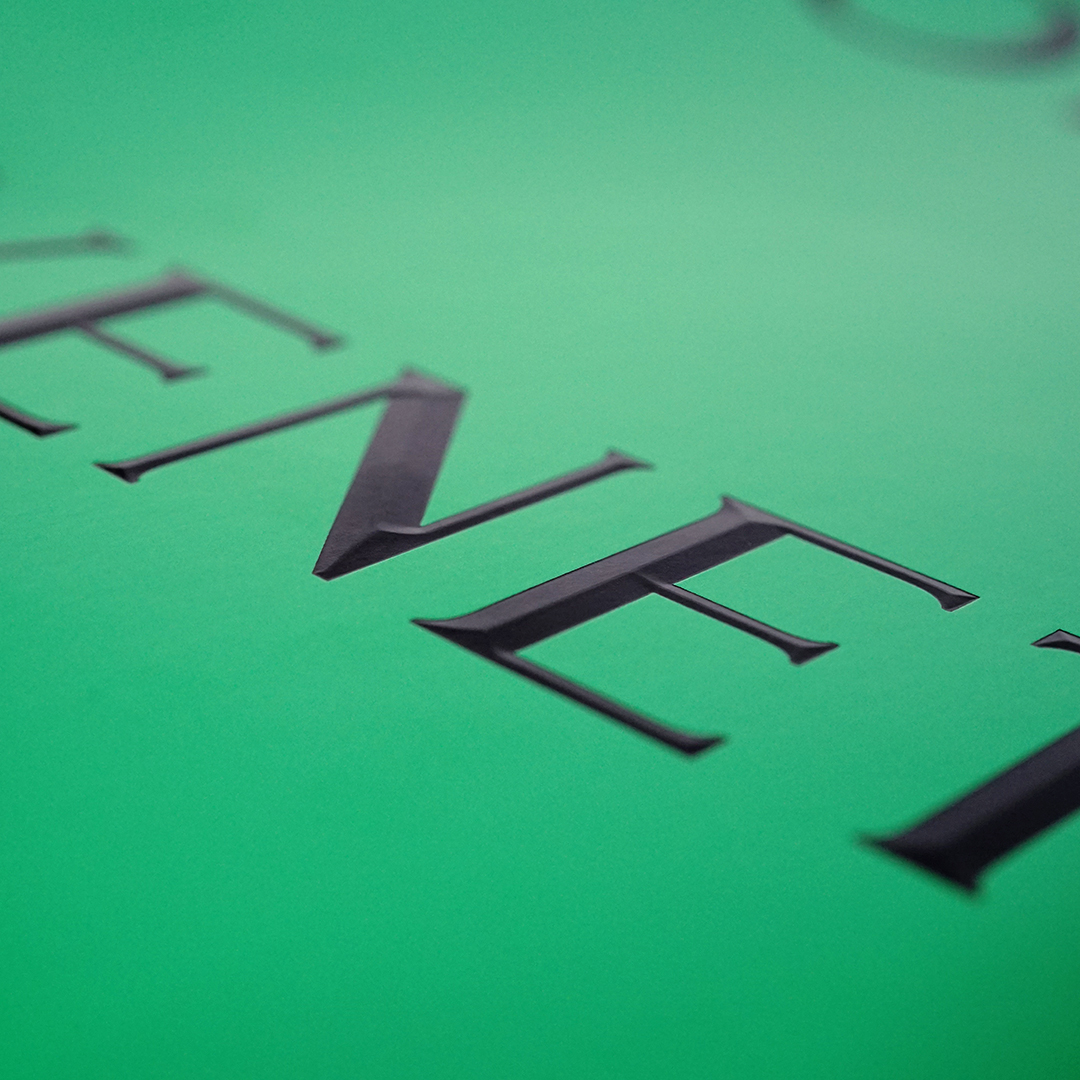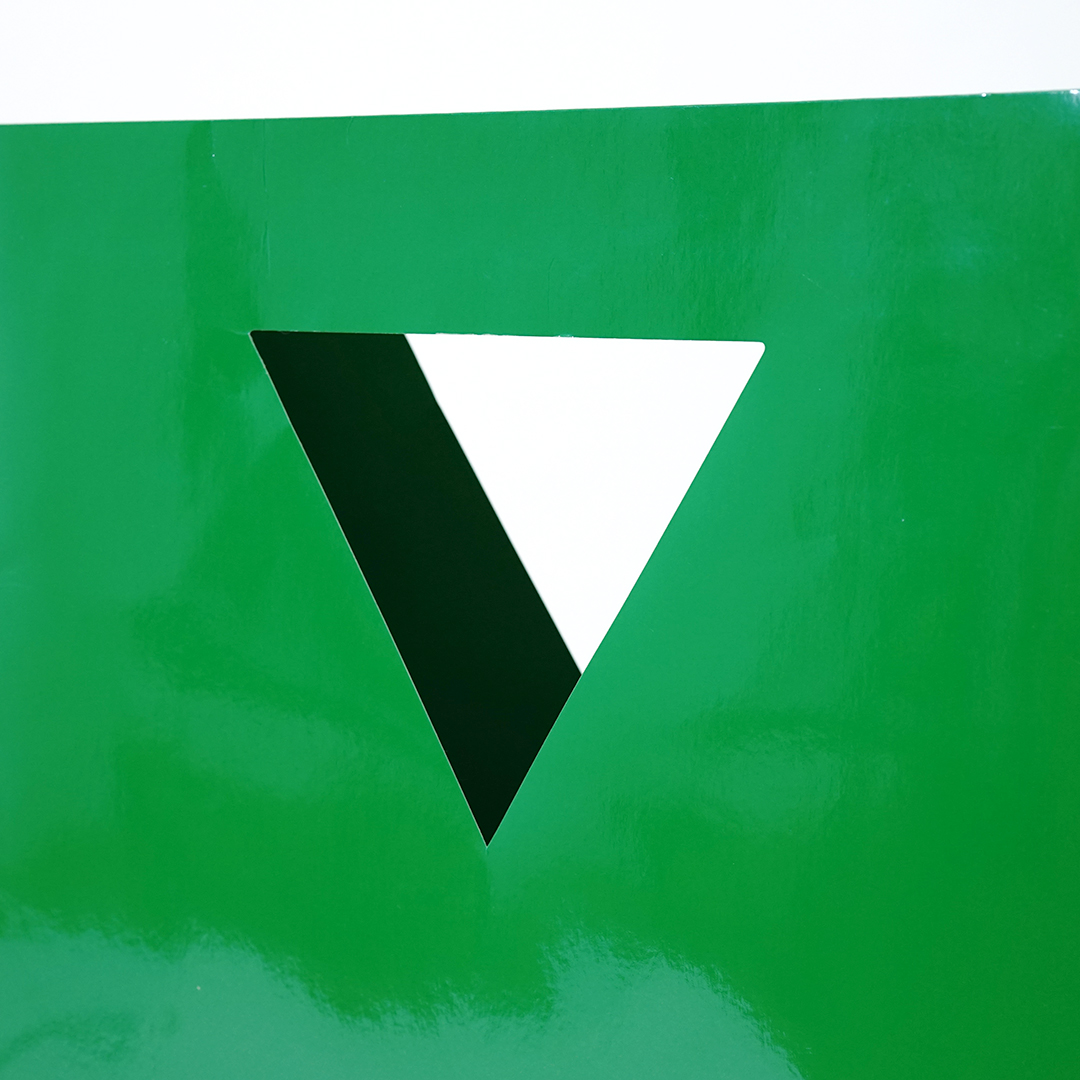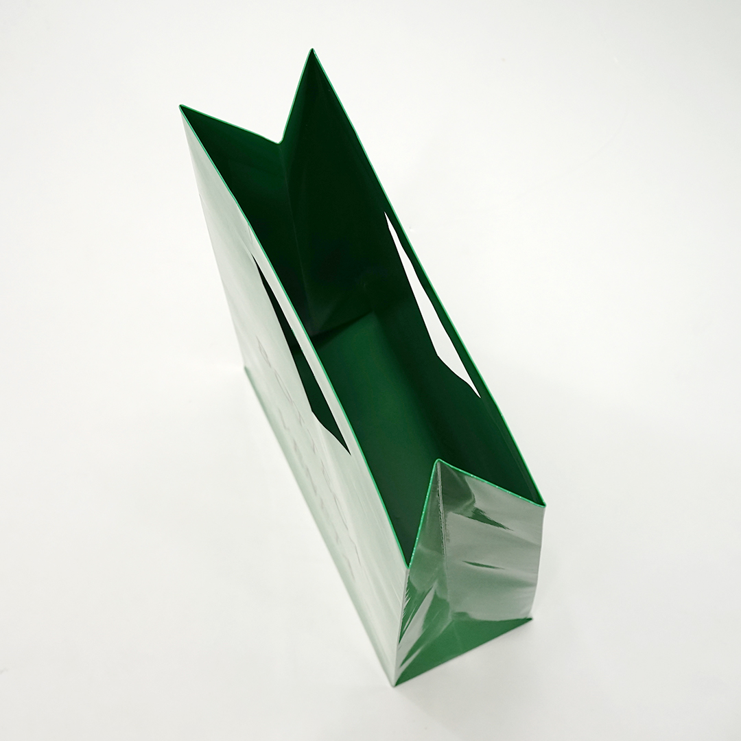 原色のグリーンの上から艶のあるグロスPP加工がされているので、