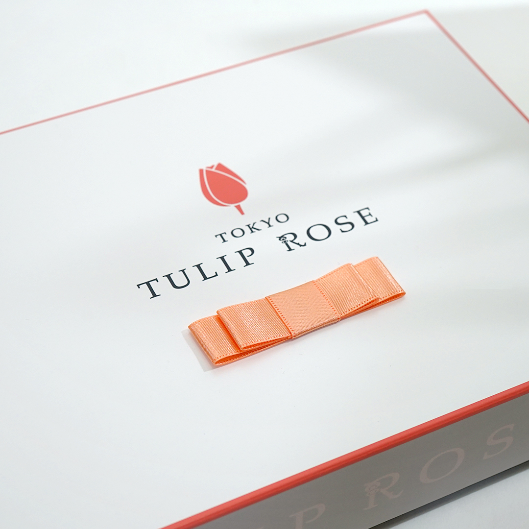 箱のリボンと色を合わせたサーモンピンクがかわいらしいです。