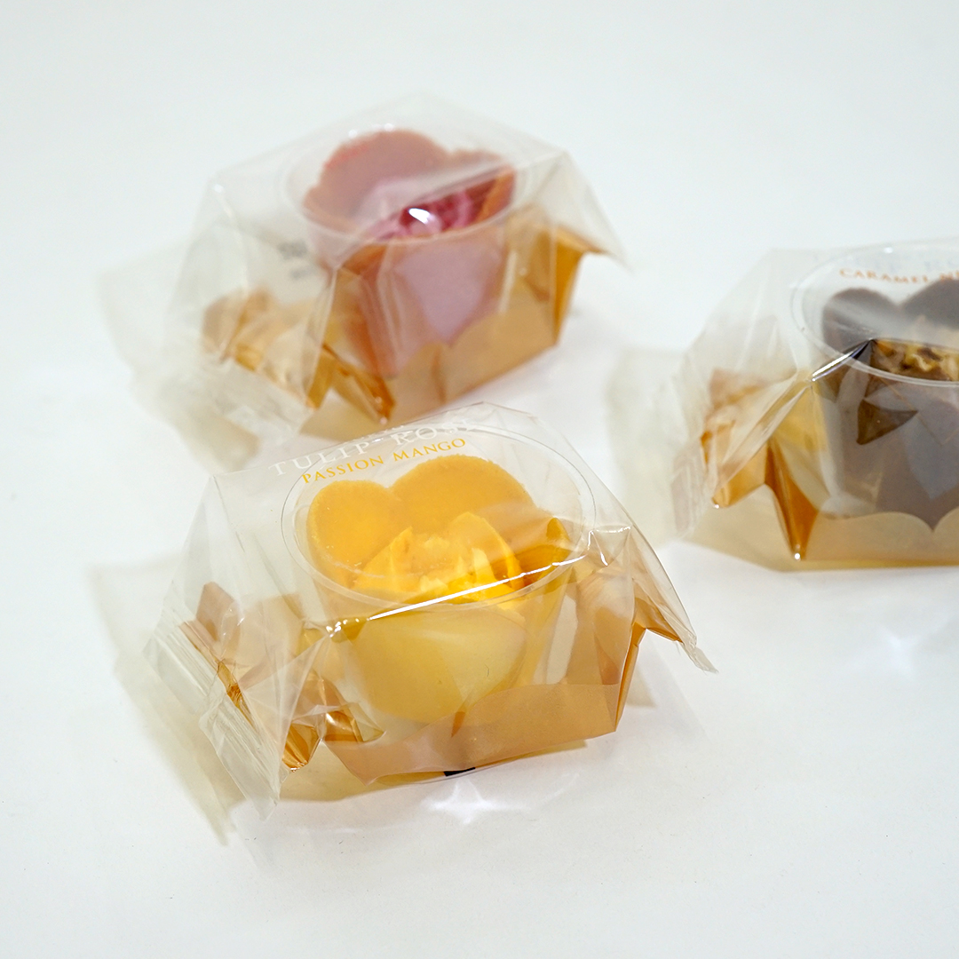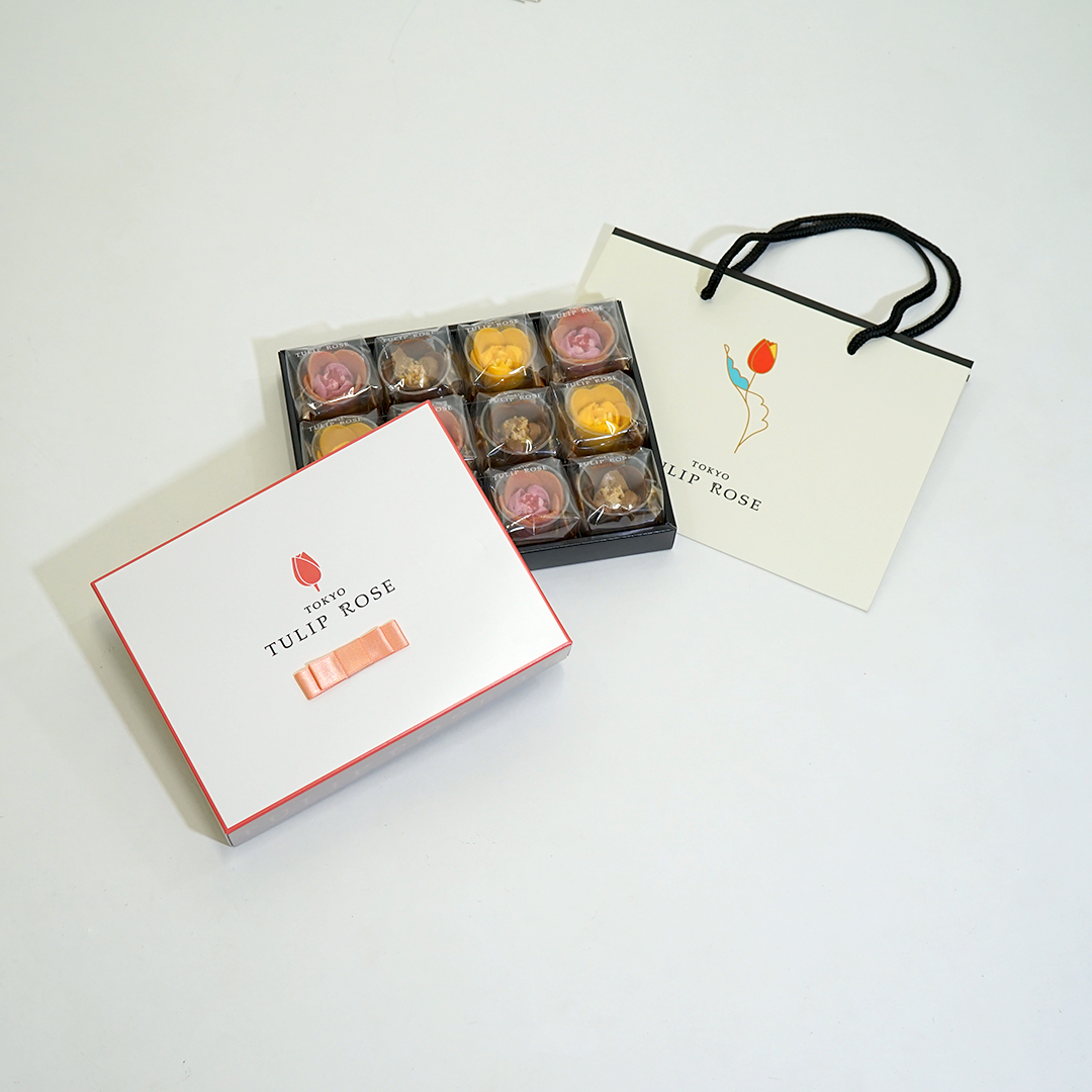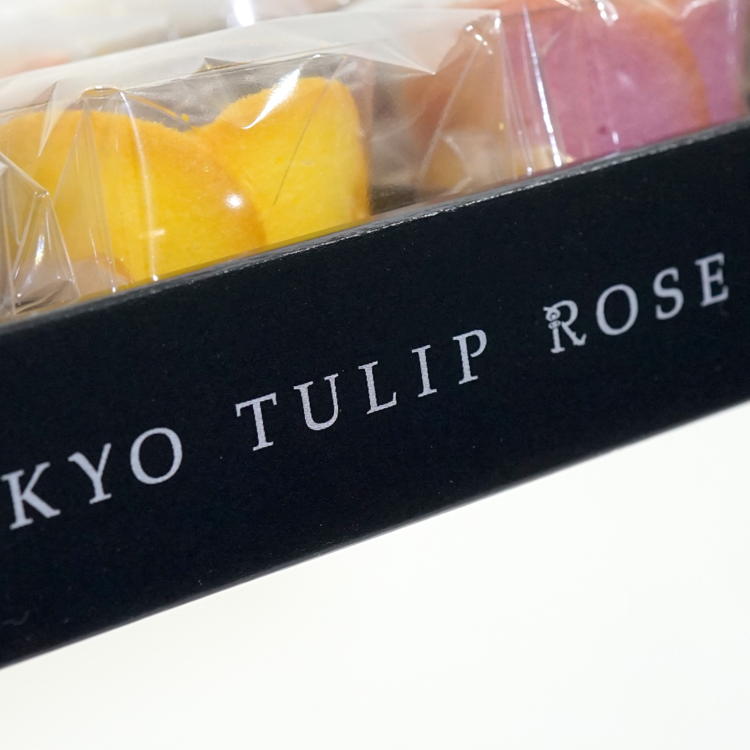 お菓子は、チューリップとローズを合わせた形になっていて
